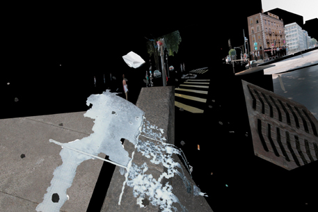 Requirements: dark space with 2 big screens in an angle (on which the image can be projected from behind),