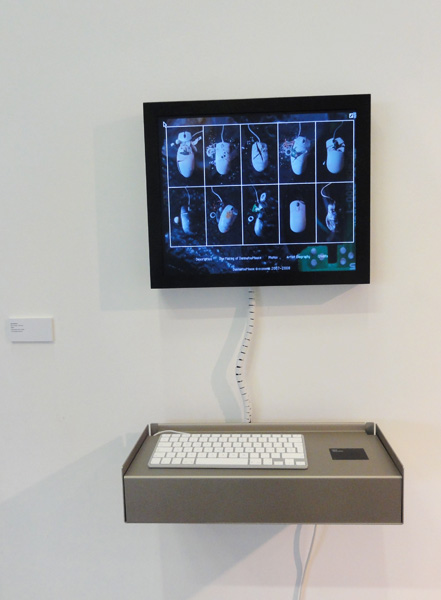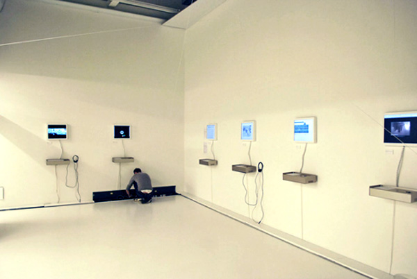 Für interaktive, tastatur- oder mausgesteuerte Werke haben wir in Zusammenarbeit mit der Zürcher Industriedesignerin Regula Büchel und der Basler Firma tweaklab eine platzsparende Wandkonsole mit integriertem Kleincomputer, Tatstatur und Trackpad entwickelt. Dieses Produkt entstand im Rahmen des Forschungsprojekts Owning online Art. |