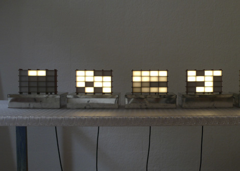 The generative light-image-objects LUMO LED's play on 4 x 4 pixels only to create an ever changing flow of patterns and forms. Chaotic formations alter with geometric and rythmic ones, blinking flashes and soft shades interfrere with each other. LUMO LED is the continuation of a extended development of pixel-light machines and in a playfull way draw uopn image generators in the 60ties computer art.