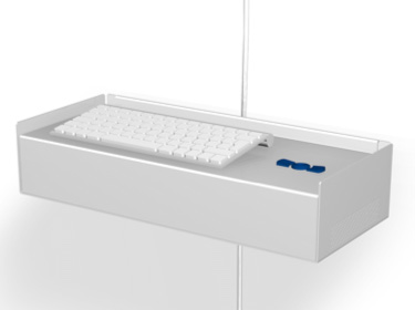 Together with the Zurich industrial designer Regula Büchel and the Basel tweaklab company, we have developed a space-saving wall console with integrated minicomputer, keyboard and trackpad, for interactive, keyboard- or mouse-controlled artwork. This product was created within the context of the research project Owning online Art (OoA). For our screenbased works, we can advice you on suitable hardware solutions and put you in touch with specialized designers.